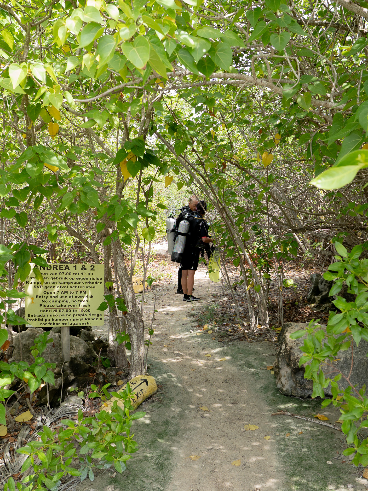 Andrea I ligt aan de westkust van Bonaire, net ten zuiden van Andrea II. De parkeerplaats is klein, dus het is slim om je auto tactisch te parkeren. Vanaf daar wandel je ongeveer 20 meter door de bosjes naar de entry/exit, die verrassend makkelijk te gebruiken is. Je stapt het water in tussen een paar koraalrotsen en zwemt over een ondiep zand en koraalplateau. Het rif begint al op een paar meter diepte en loopt langzaam af tot ongeveer 25 tot 30 meter. Het kleurrijke koraal biedt een thuis aan tropische vissen, papegaaivissen en soms een nieuwsgierige schildpad.