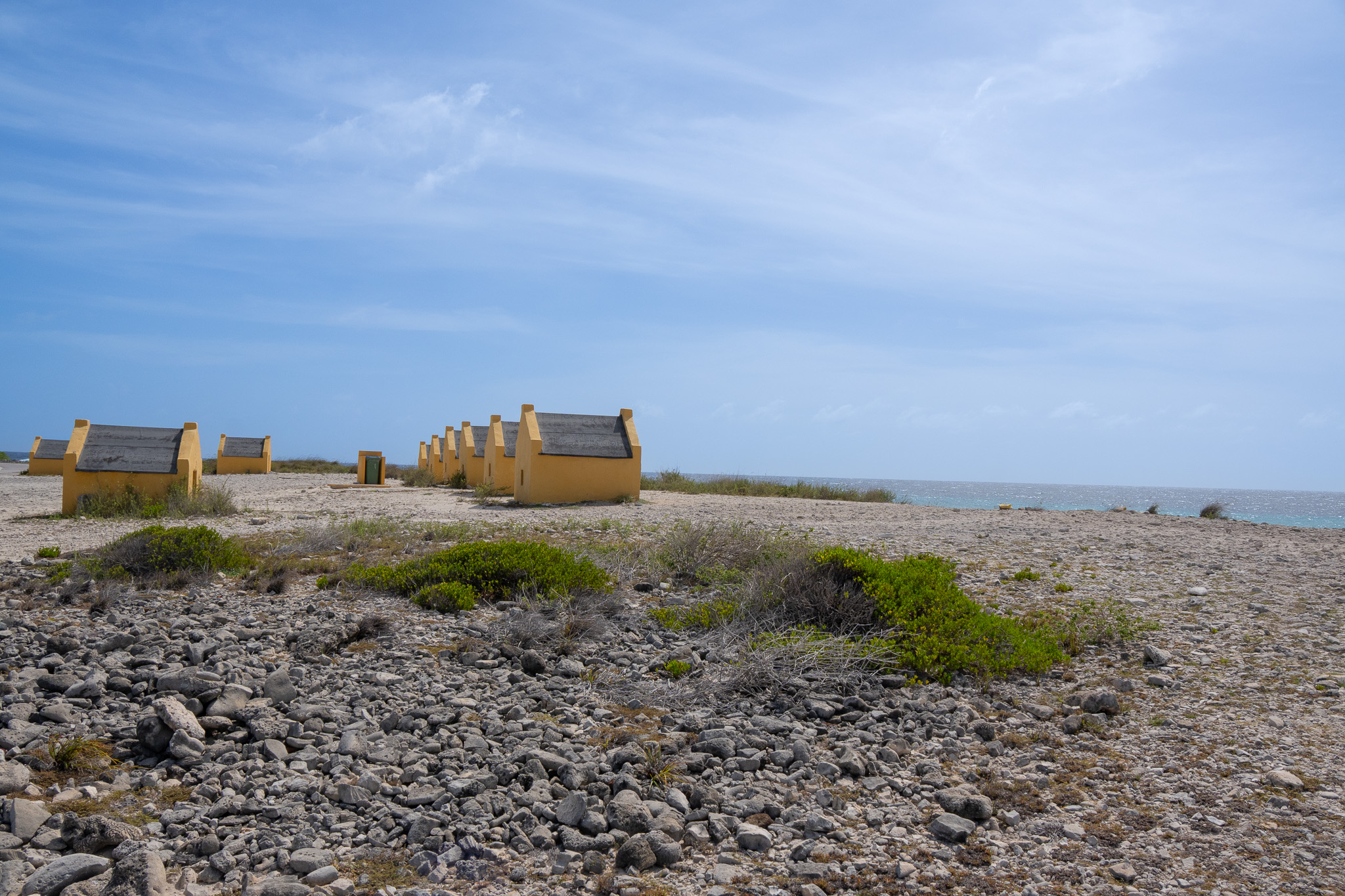 Duikstek Red Slave is een plek die meteen indruk maakt. De felrode slavenhuisjes vormen een krachtig herkenningspunt langs de zuidkust van Bonaire, midden in een gebied waar wind, golven en geschiedenis samenkomen. Het voelt ruig, open en geschiednis vol.