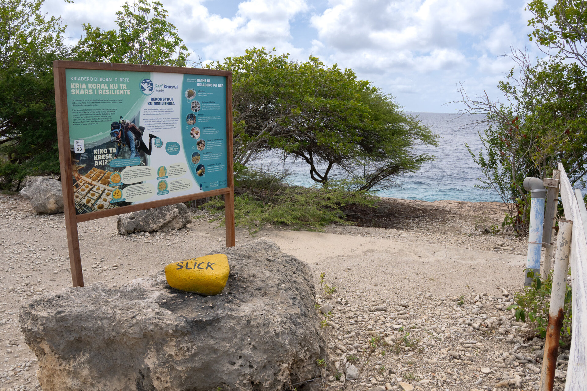 Duikstek nummer 20- Oil Slick Leap is gemakkelijk bereikbaar en bevindt zich tegenover Stinapa. Daarnaast is er een ruime parkeerplaats waar je gemakkelijk de auto kwijt kunt.