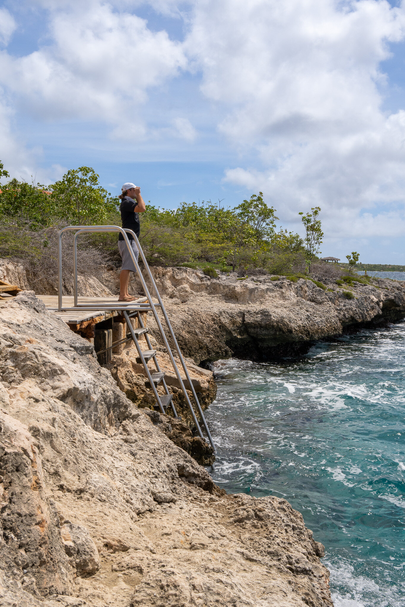- Bijna overal op Bonaire kun je het water inlopen en is een sprong niet verplicht. Bij Oil Slick Leap zit dat net iets anders. Springen is de eerste optie, de tweede optie is om achteruit van de trap te lopen. Kies wat voor jou het prettigste is.